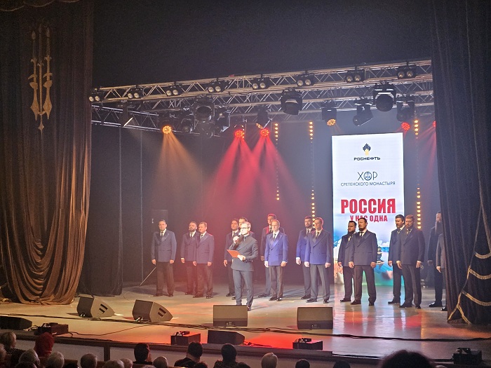 Нижневартовск. «Россия у нас одна» - так называется новая музыкальная постановка Хора Сретенского монастыря. Выступление коллектива состоялось в Нижневартовске при поддержке нефтяной компании «Роснефть».
